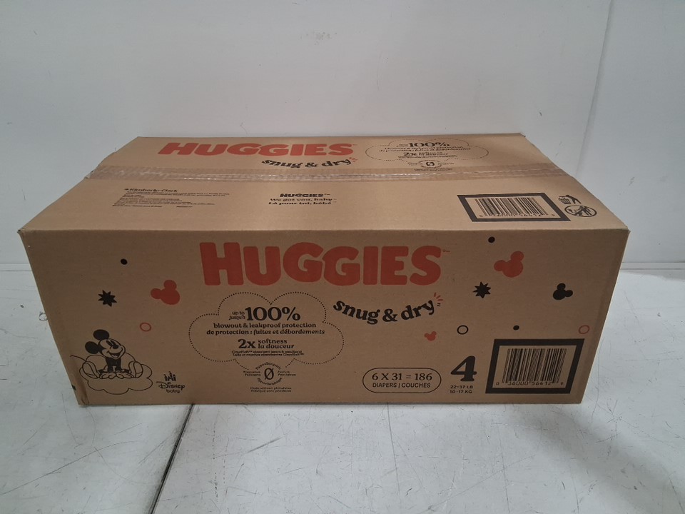 186pk huggies snug and dry diapers - size 4 - 22lb to 37lb - disney mickey mouse