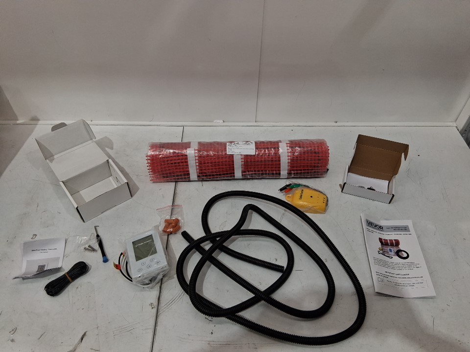 Electric Radiant In-Floor Heated adhesive backing floor heating mat with digital floor sensing thermostat and installation monitor - 10 sq ft - multicolour (model: shhm)