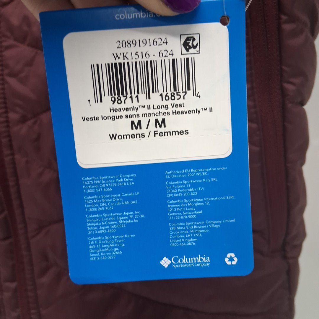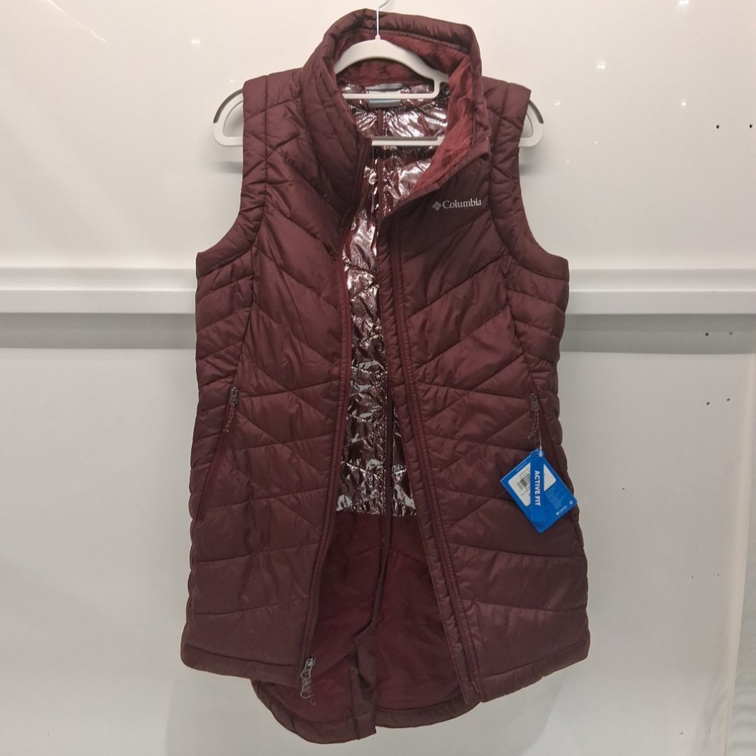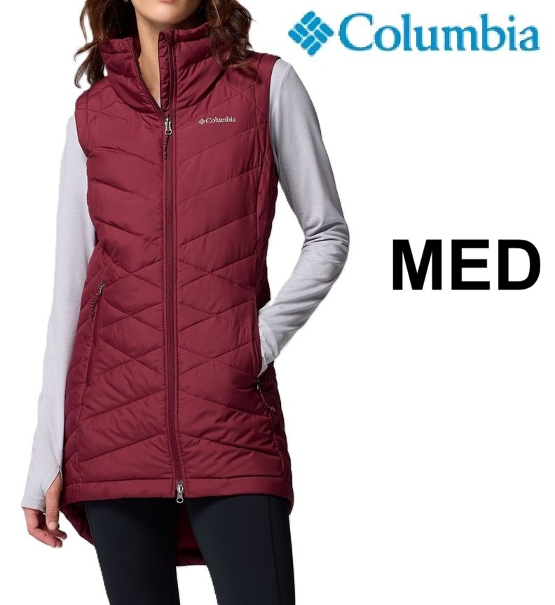 womens columbia heavenly ii long vest with omni-heat - medium - rich wine (style: wk1516-614)
