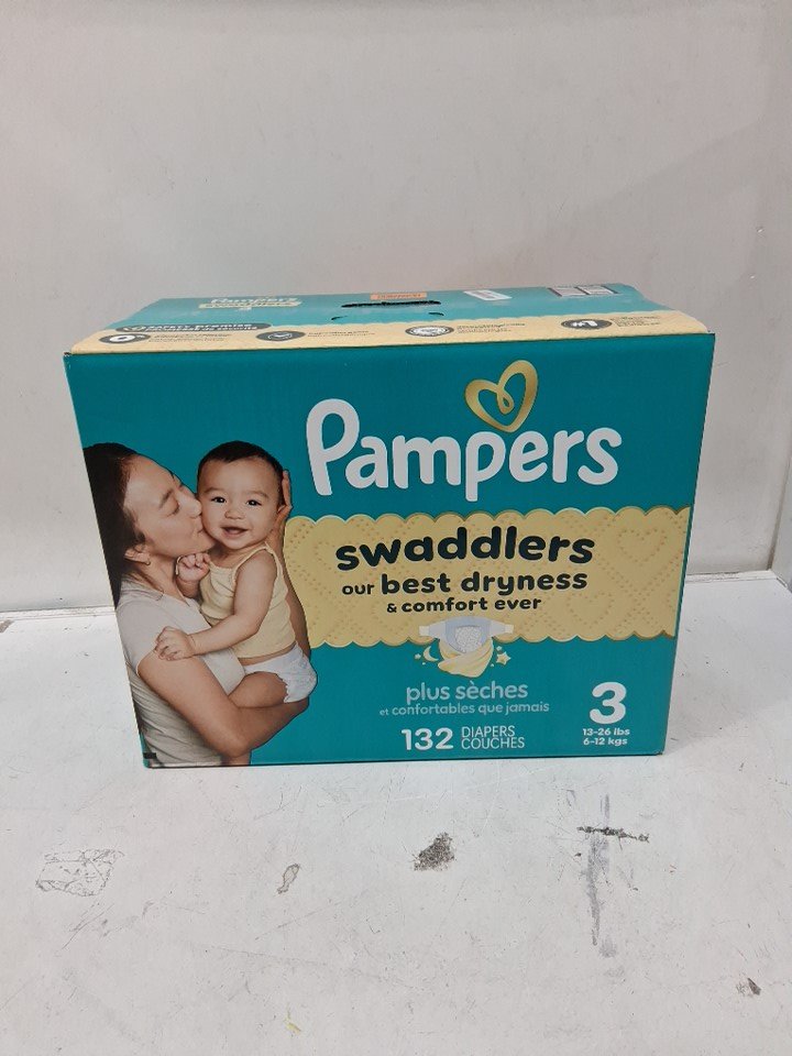 132PK PAMPERS SWADDLERS DIAPERS - SIZE 3 (13LB - 26LB)