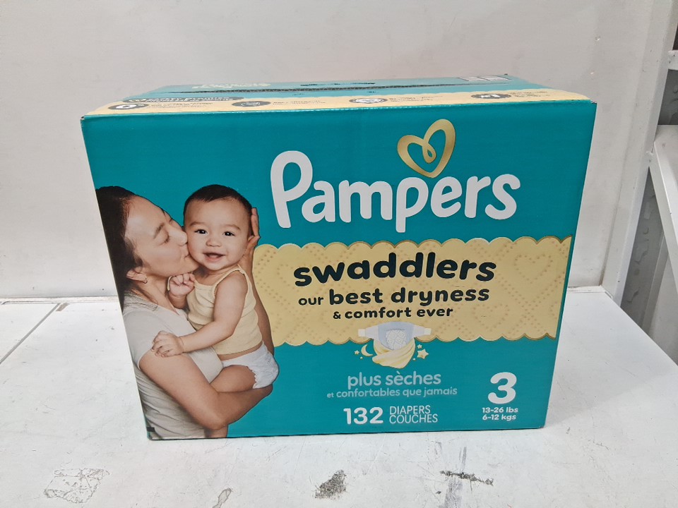 132PK PAMPERS SWADDLERS DIAPERS - SIZE 3 (13LB - 26LB)