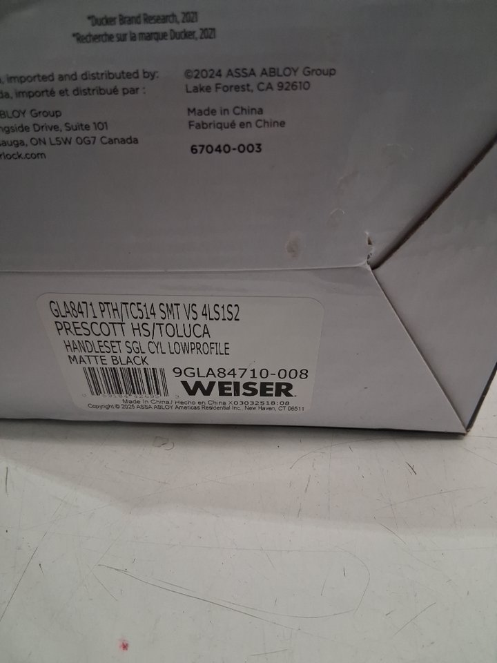 3PC Weiser Prescott Handleset With Toluca Lever Featuring SmartKey - MATTE BLACK (MODEL: 9GLA84710-008)