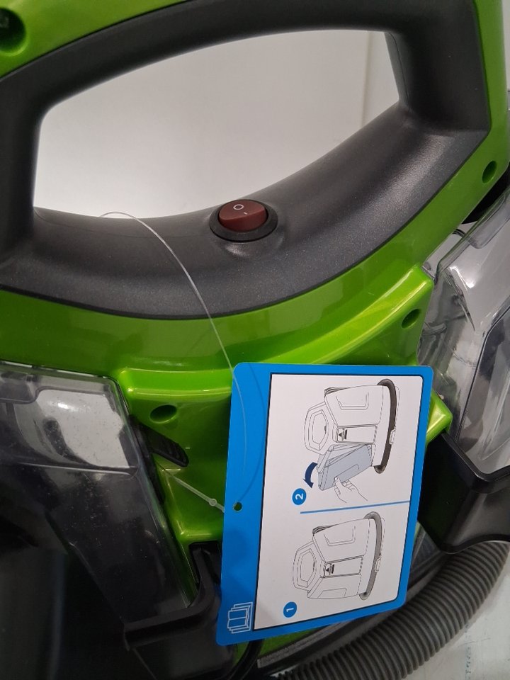 Please note that the cleaning solution has been open & has about half of the container left (see photos). Tested for power & function.