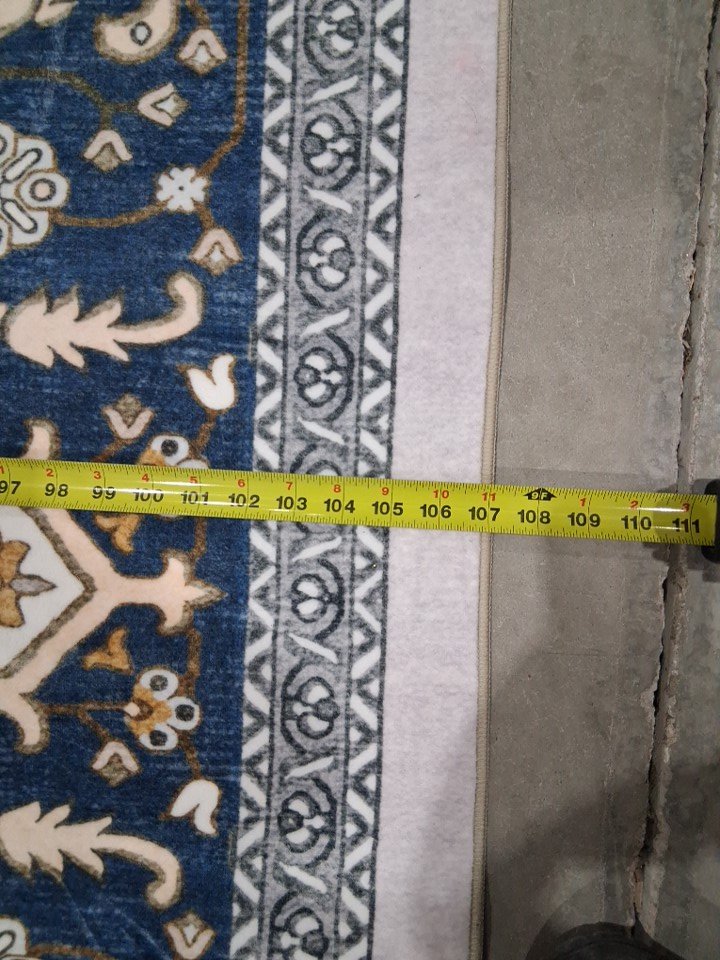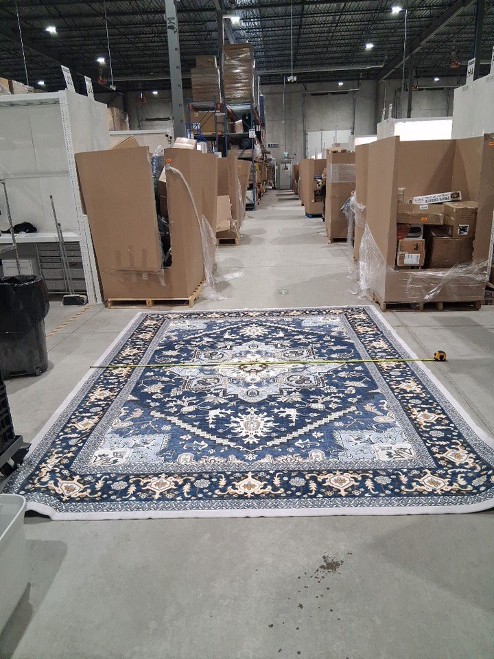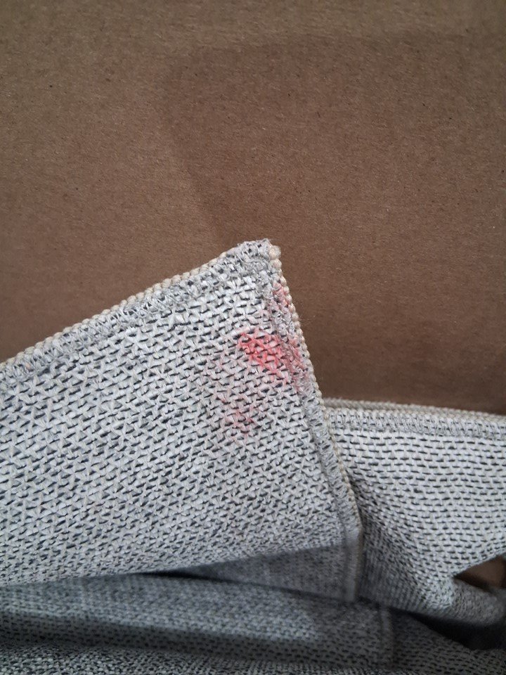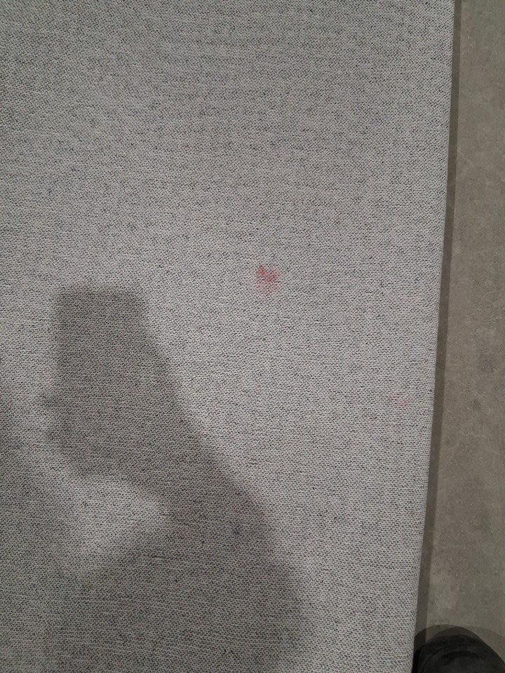 There is some noticeable but light dark staining on some of the outer white areas of the rug as well as some pink stains on the backside of this rug.
