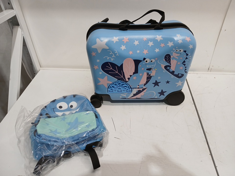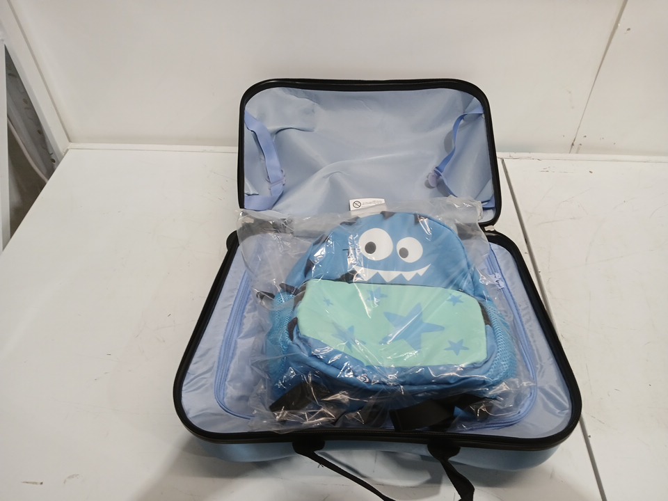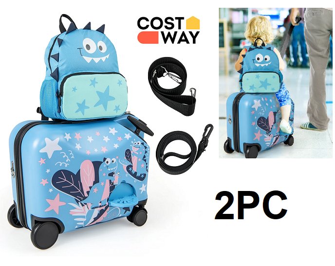 2pc costway kids ride on luggage set - 12" backpack and 18" suitcase - blue (model: bn10024bl)