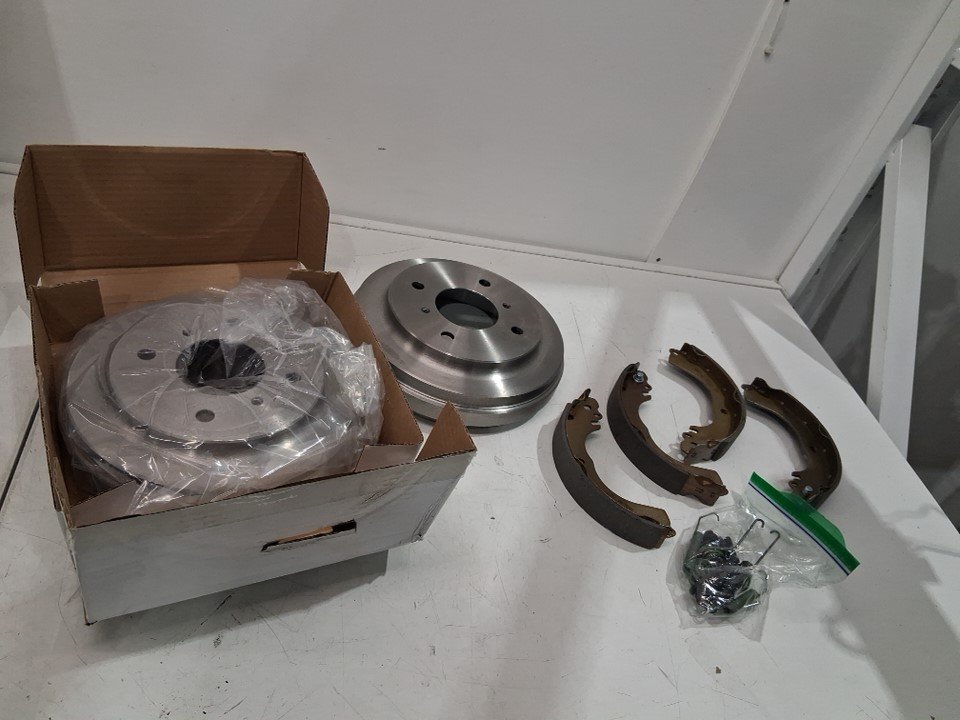 There is some dirt residue on the drum rotors and brake pads, see photos.