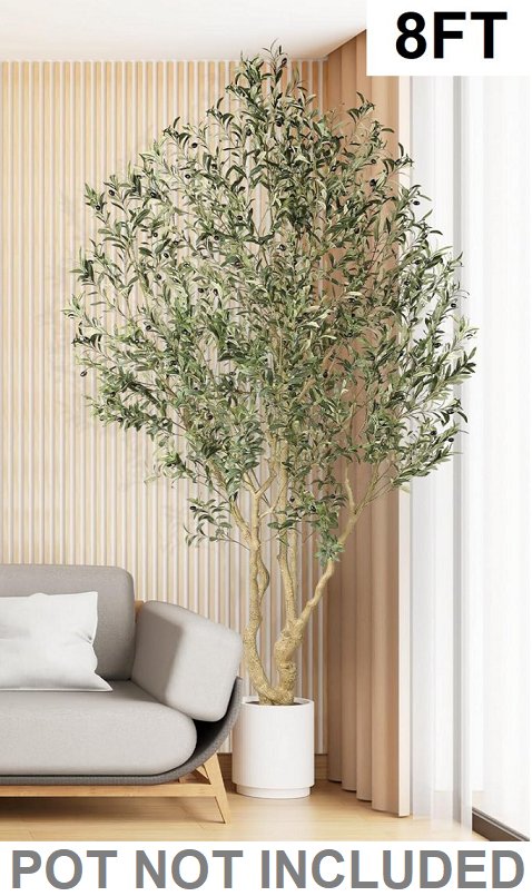 Realead Artificial Tall Faux Olive Tree with Natural-Looking Trunk, Textured Bark, and Lifelike Green Leaves, and Adjustable Branches - 8FT - Green/Brown