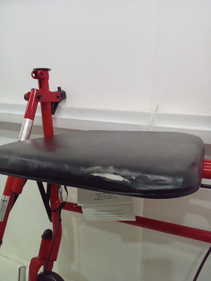 please notice that there is a tare in the fabric on the seat and minor dirt on the wheels - see photos.