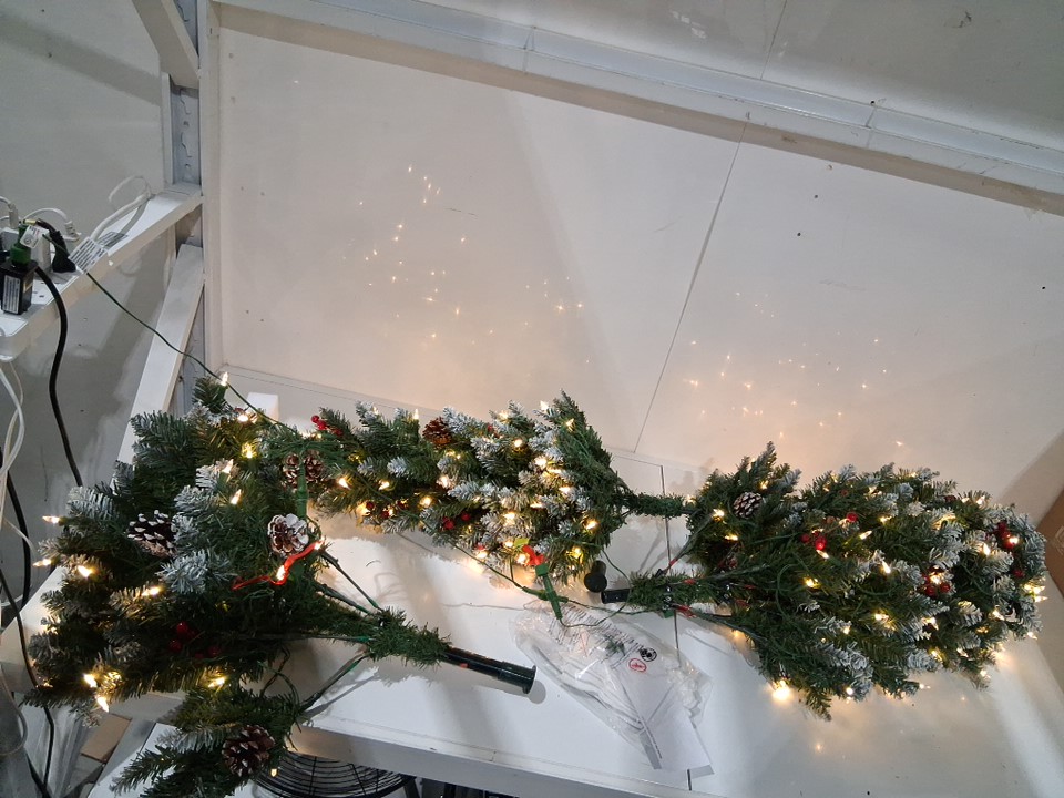 happygrill pre lit slim artificial Christmas tree - 6ft - green/white/red - (model: cm25010us-m)
