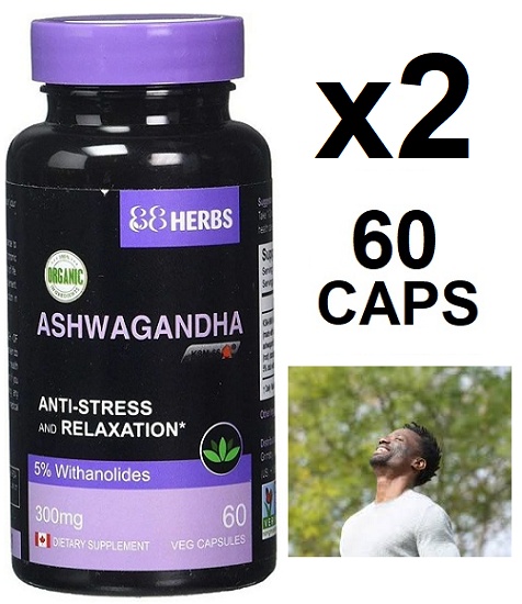 2 (60 CAPSULES) 88Herbs Organic Ashwagandha Supplement for anti-stress and relaxation - 300mg
