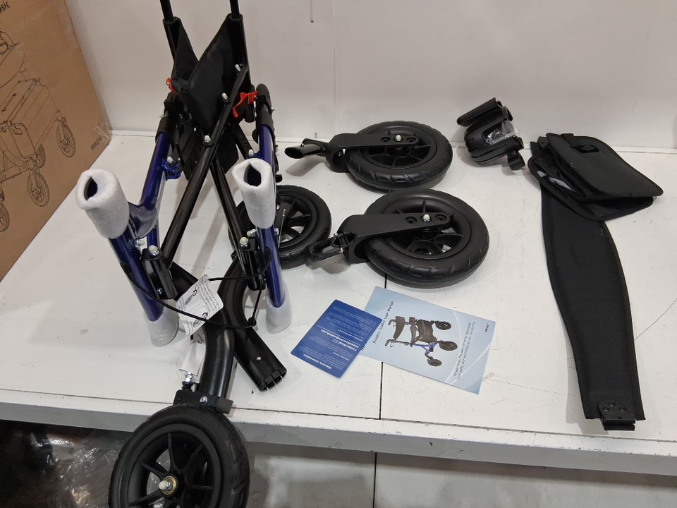 MAXWALK Rollator Walker with Seat and backrest - 10" - 300lbs capacity - black/blue (model: ‎MW2401-Blue)