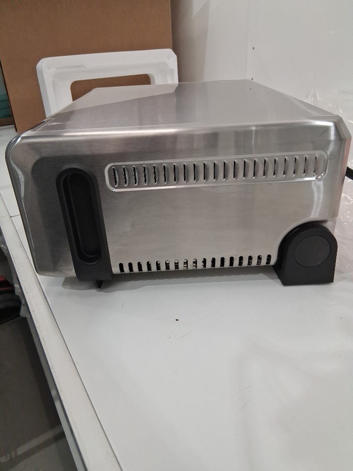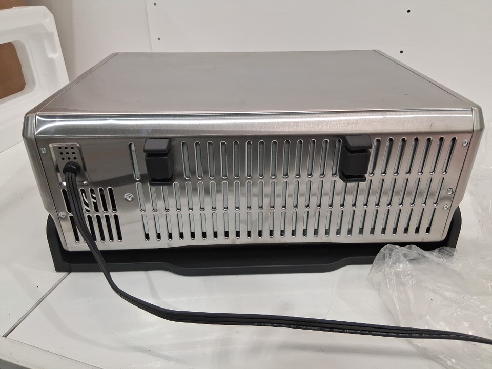 tested for power. toaster oven has been used previously as there is still some food residue on the door.