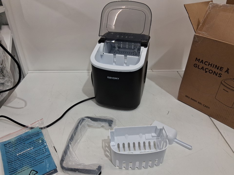 EUHOMY Countertop Ice Maker Machine with Handle, Basket and Scoop - MAKES 26LBS Per Day - BLACK - (MODEL: im-06d)