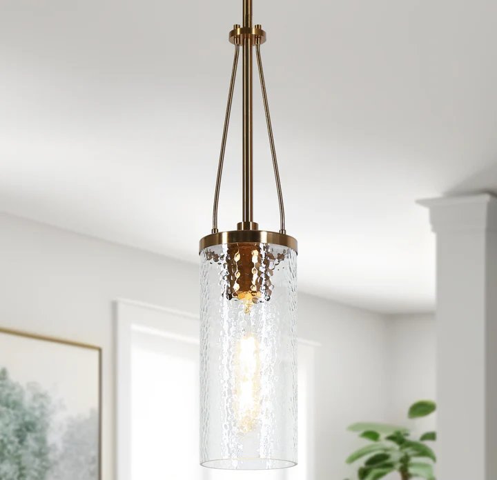 LNC 1-LIGHT MODERN CYLINDER HANGING PENDANT LIGHT FIXTURE - 4.75" DIAMETER - BRASSY (MODEL: A05297)