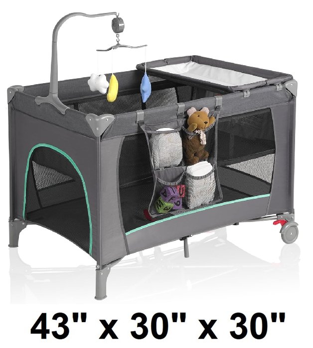 xuemi pack and play portable crib with carrying bag - 43" x 30" x 30" - drey (model: hy-8036)