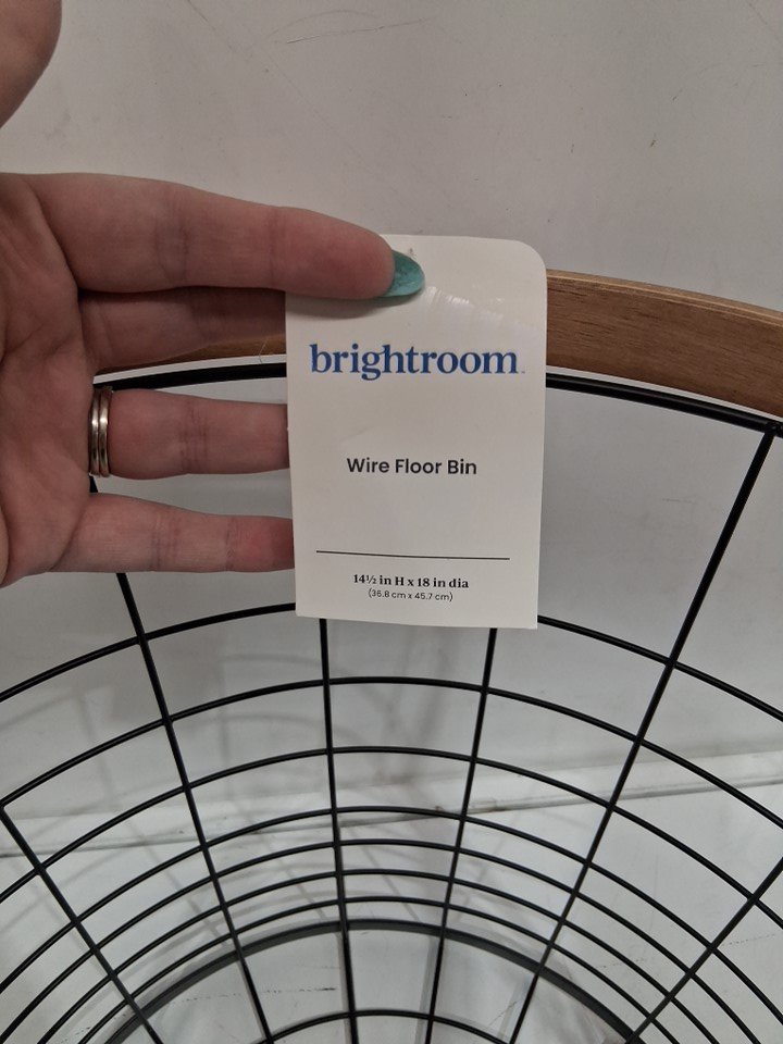 brightroom round wired floor storage bin with wooden handles - 14.5" x 18" - black/natural wood (model:002-07-1519)