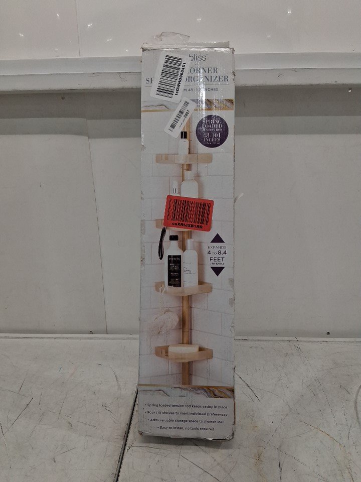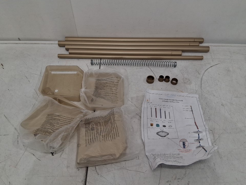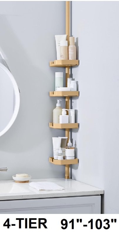 BATH BLISS 4-TIER TENSION ROD ADJUSTABLE CORNER STORAGE SHELF ORGANIZER - 91" x 103 - gold