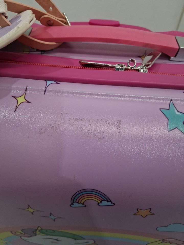 There are numerous light scuffs on the exterior of the suitcase and some dirt collected on the wheels, indicating some prior usage - see photos. Outside of these signs of use, there does not appear to be any major damage to or issues with any parts.