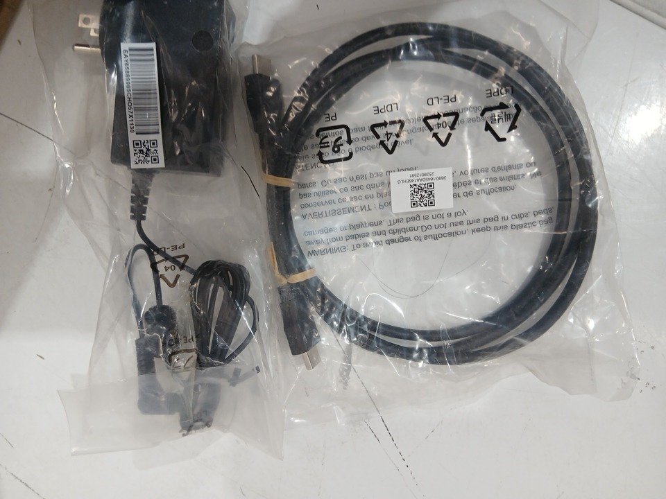 appears new but has some minor dust and scratches on back from handling. cables arrived sealed but have been opened to check the display.