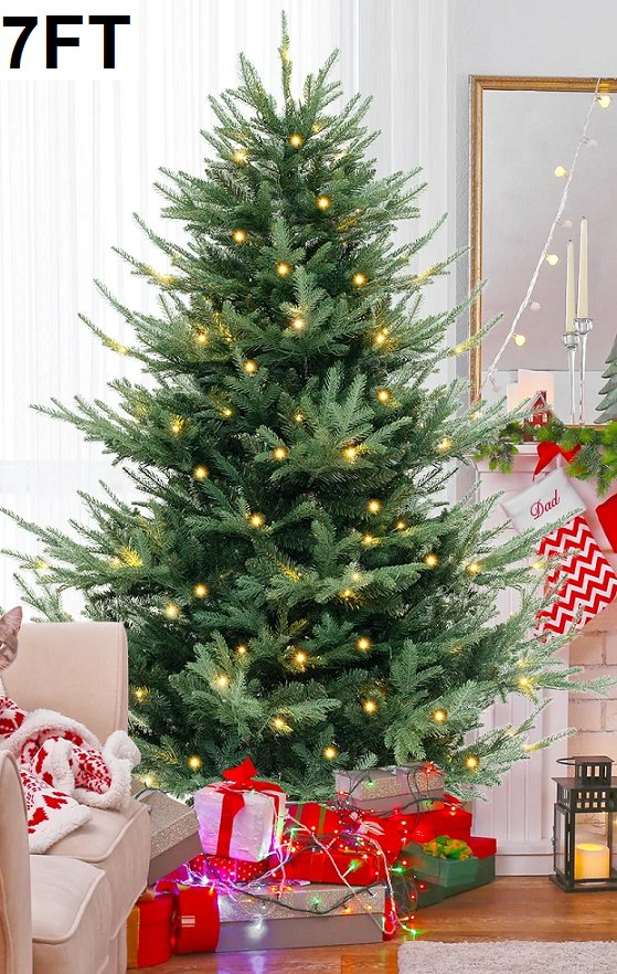 COSTWAY Pre-Lit Artificial Christmas Tree with Warm White LED Lights and Branch Tips - 7FT - GREEN (MODEL: CM25025US-M)
