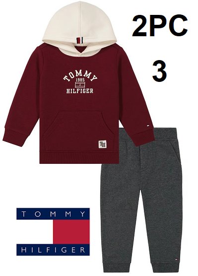 2PC BOYS tommy hilfiger sweater & joggers set - size 3 - burgundy/grey