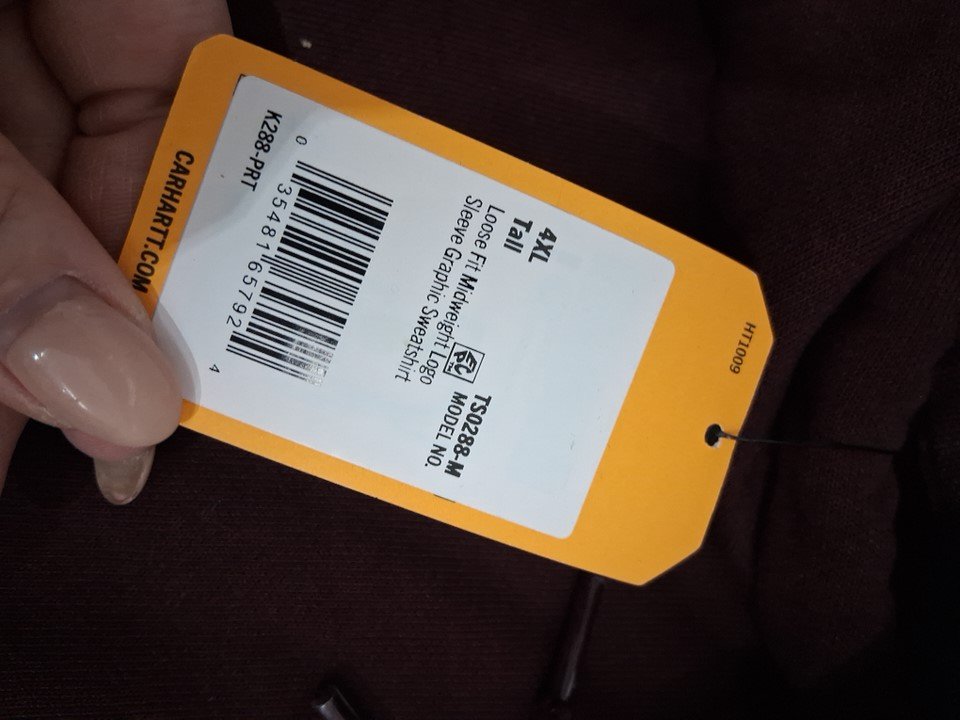 MEN'S CARHARTT LOOSE FIT MIDWEIGHT logo sleeve graphic hoodie sweatshirt - Extra Large TALL - PORT (model: ts0288-m)