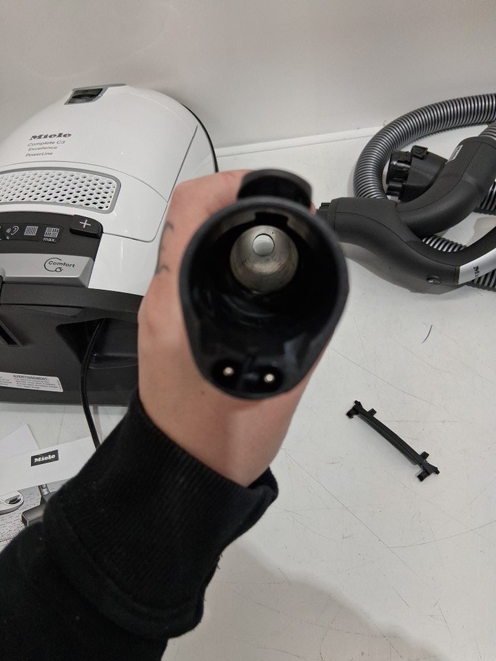 this does not come with bags, these can be purchased online. the button that keeps the lid on the bag holder has also broken off. it looks as though it clips on however i am unsure how it attaches, possibly a handy person would have better luck. tested for power.
