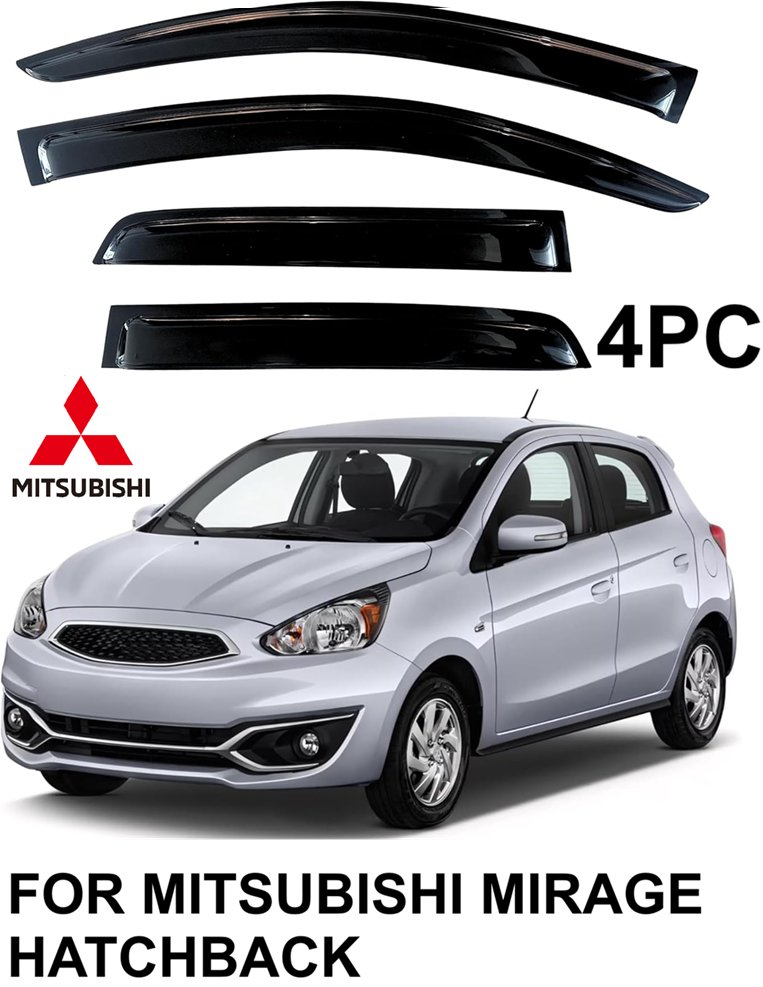 4PC KPY Rain Guard Window Visor - Compatible with Mitsubishi Mirage Hatchback 2014-2020 - black tinted/red (model: ‎812009)