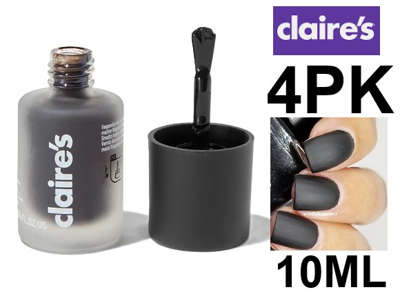 4PK Claire's Matte Effect Vegan Nail Polish - Black