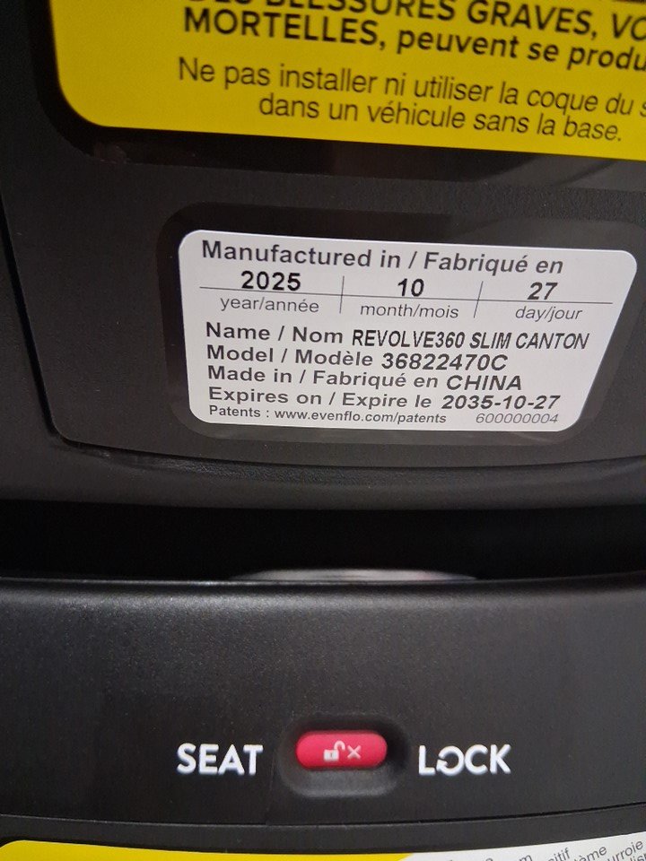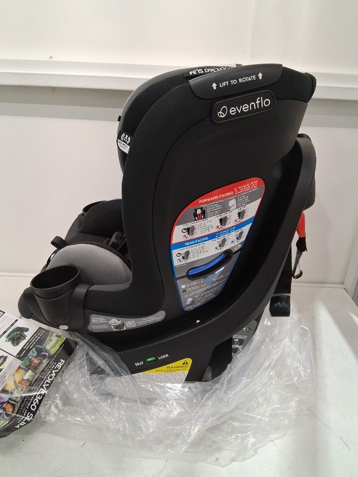 EVENFLO REVOLVE360 SLIM Canton BABY CAR SEAT WITH CUPHOLDER -65LB MAX- GREY/BLACK (MODEL: 36822470C)