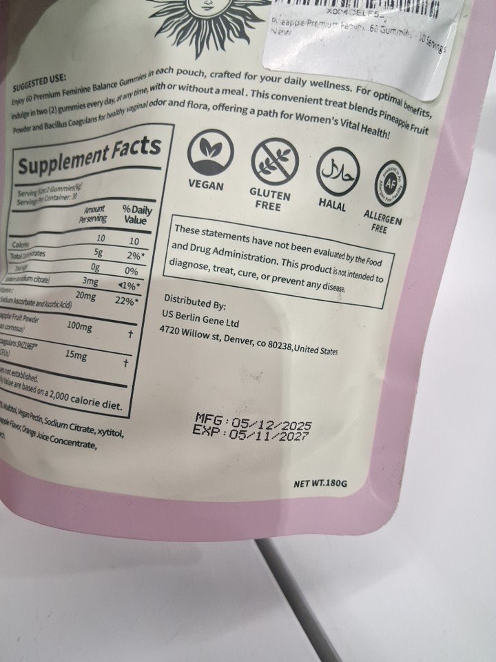 (60 GUMMIES ) VITAL NATURAL NUTRITION premium feminine balance gummies- hawaiian pineapple