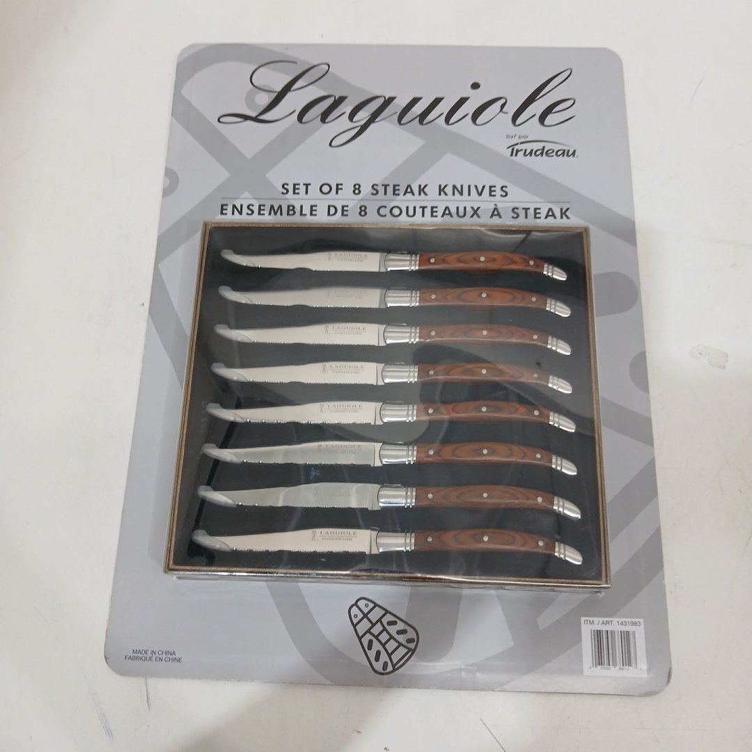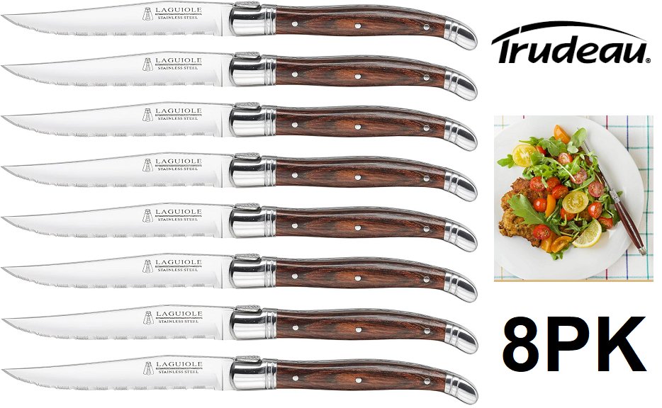 8PK LAGUILE BY TRUDEAU STEAK KNIVES SET WITH PAKKAWOOD HANDLES - (MODEL: 1431983)