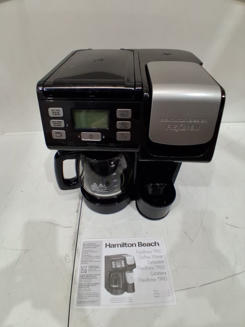 Item shows signs of previous use such as coffee debris stain on multiple pieces. Item tested for power.