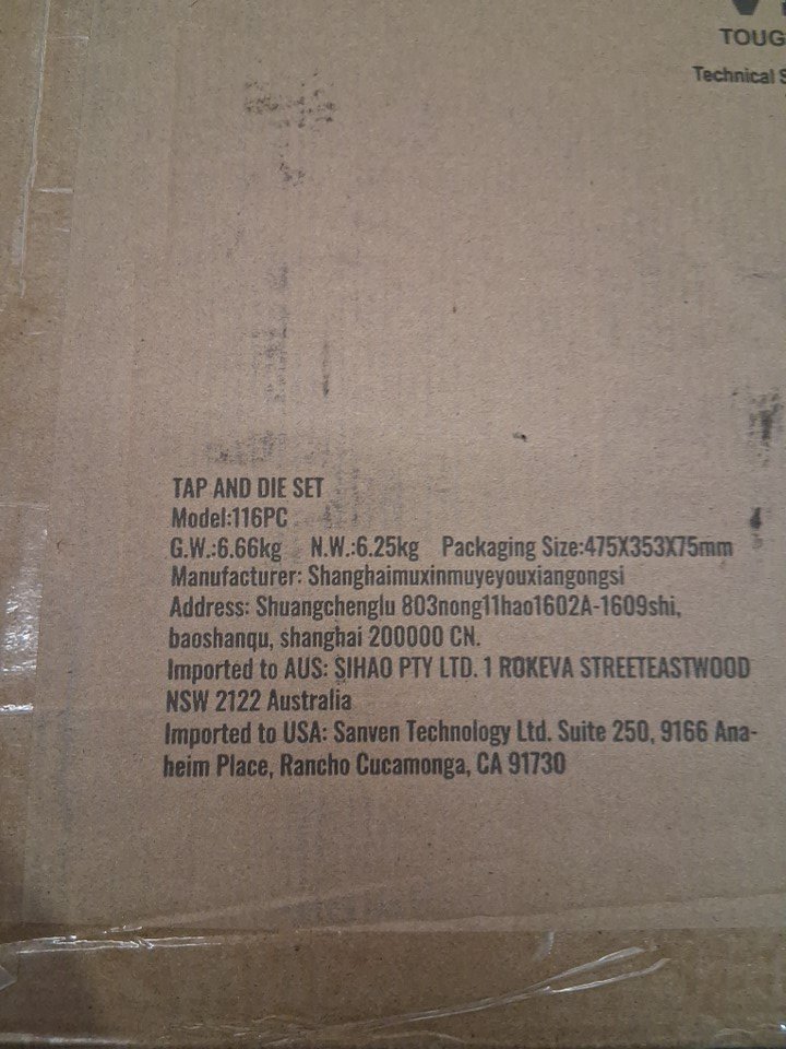 116PC VEVOR Tap and Die Set, Includes Metric and SAE Size (model: SZHMJZSZBY116ORORV0)