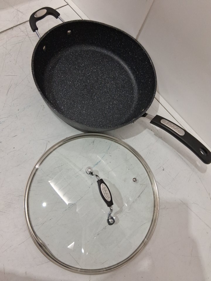 Please note that there is a dent on the pan & lid at the top (see photos) - lid still fits on pan.