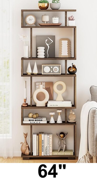 costay 6-tier geometric bookshelf for living room/office - 23.5" x 8" x 64" - walnut brown(model: CB10854WN)