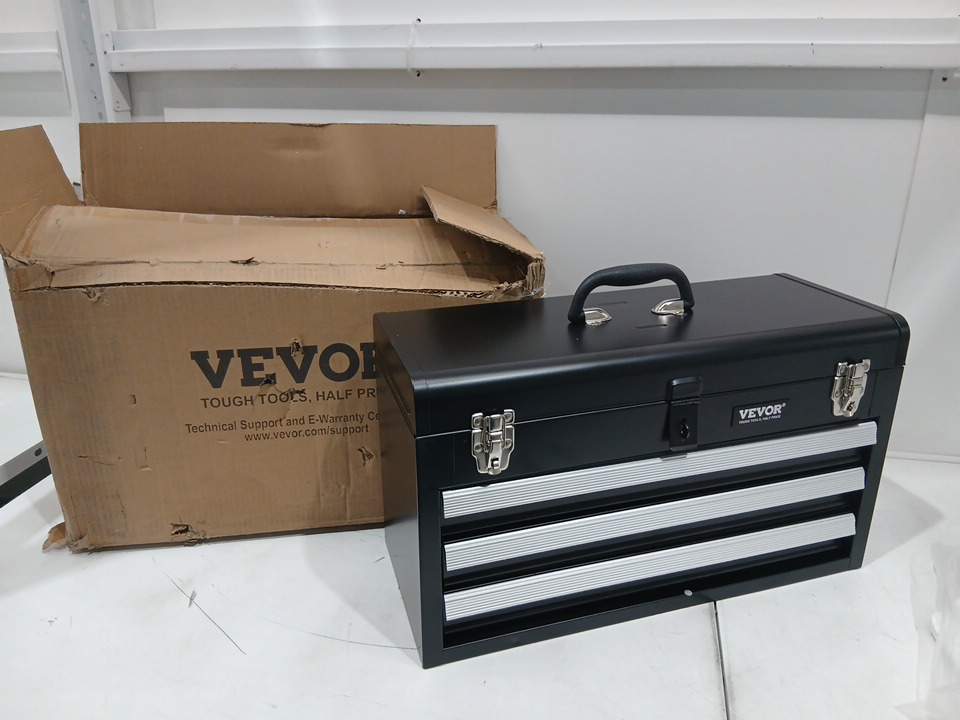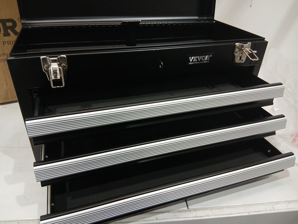 vevor metal 3-drawer tool box with locking - 20.5" - black/silver (model: tbd-2003ssbk)