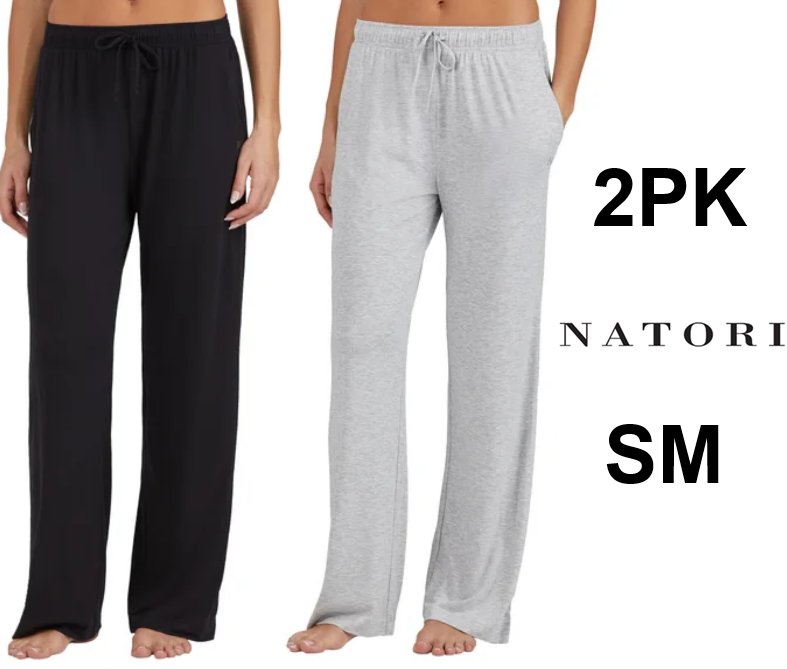 2pk women's natori nova cozy drawstring pants - small - black (Style : 1841400)