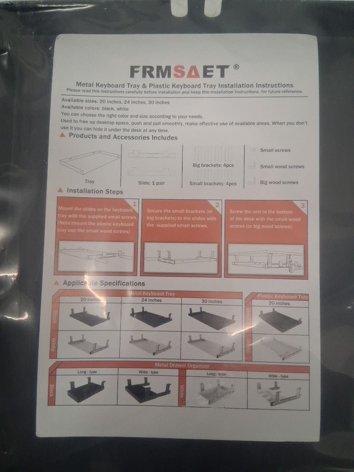 FRMSAET PULL OUT KEYBOARD DRAWER TRAY - 20" - BLACK