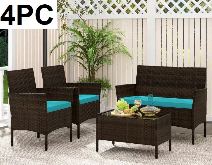 4PC COstway wicker Patio Conversation Set - brown/teal (model:hw71887PB)