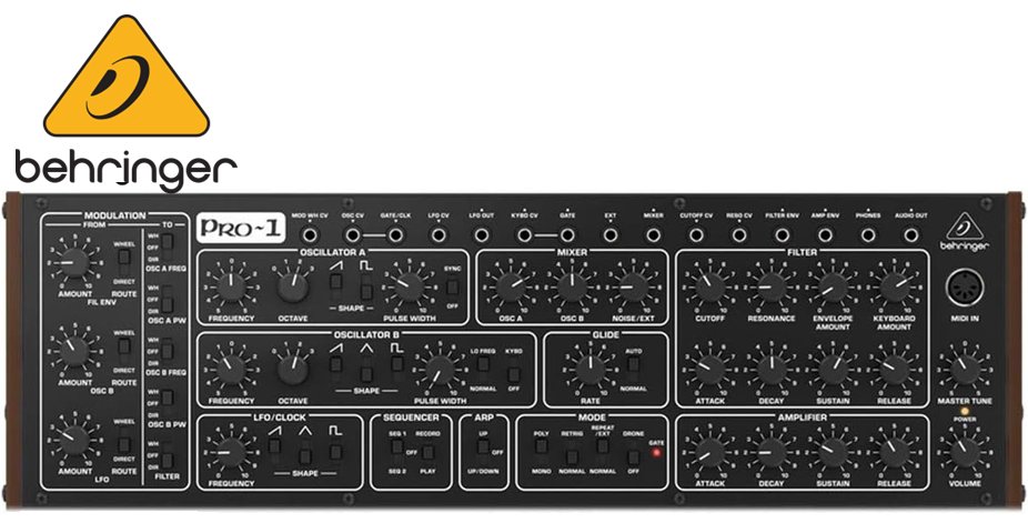 Behringer Pro-1 Analog Synthesizer with Dual VCOs, 16-Voice Poly Chain