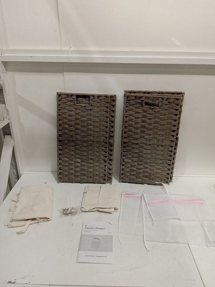GREENSTELL - Clothes Hamper with 2 Removable Liner Bags & 2 Mesh Laundry Bags, Handwoven Synthetic Rattan Laundry Basket, 60L - 22.8" x 13.4" - brown - (model: lh011-v2-gy-gl)