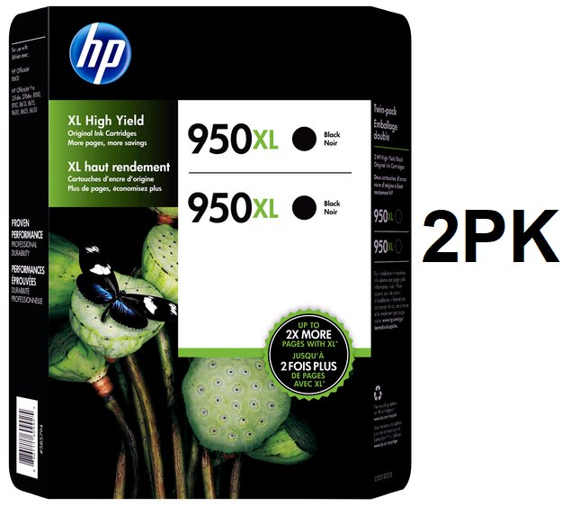 2PK HP 950XL Ink Cartridges for Select Printers - Black (Model: 585794)