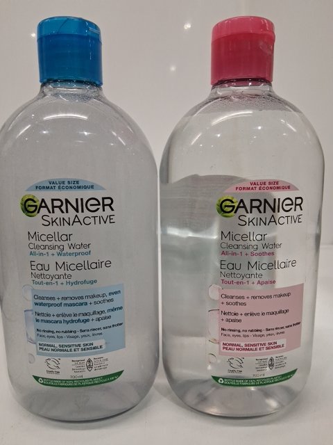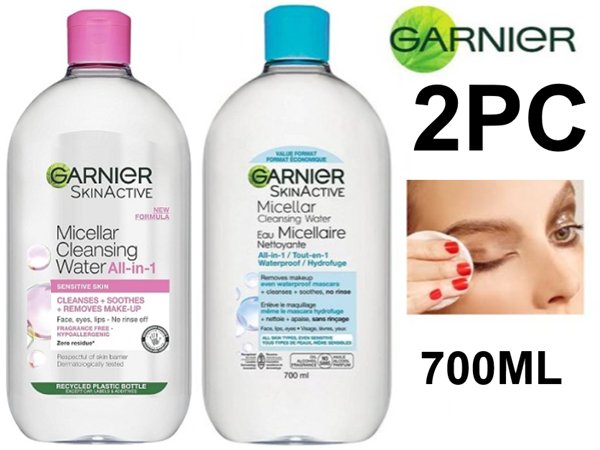 2OC garnier skinactive micellar cleansing water to soothe, cleanse and remove makeup AND WATERPROOF MAKEUP REMOVER - 700ML / EACH