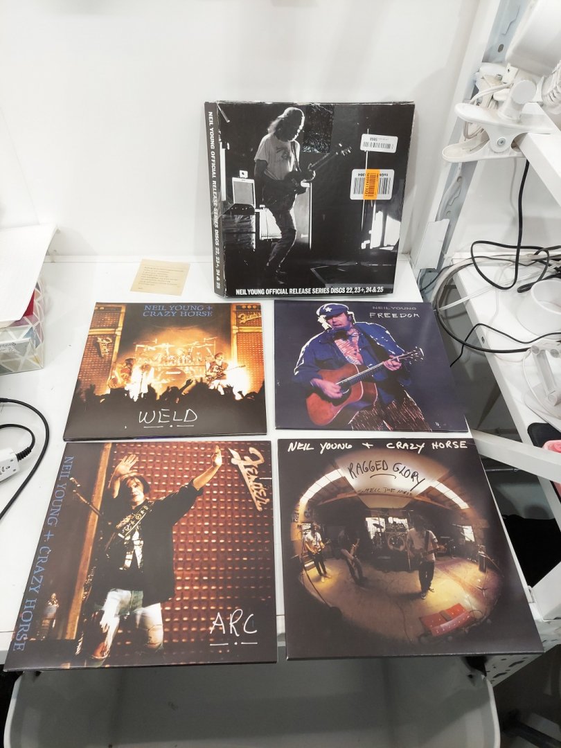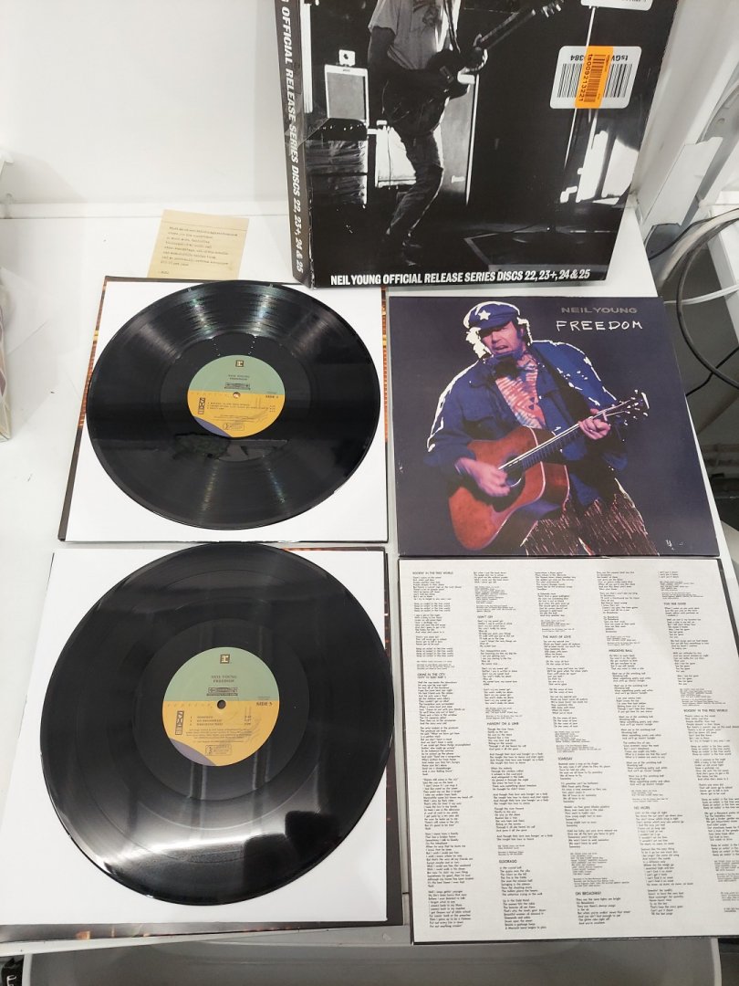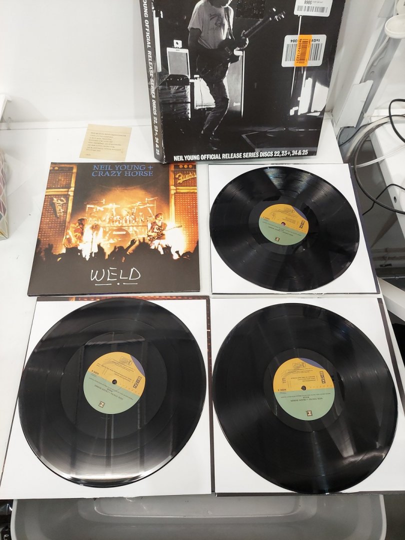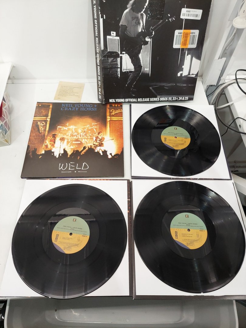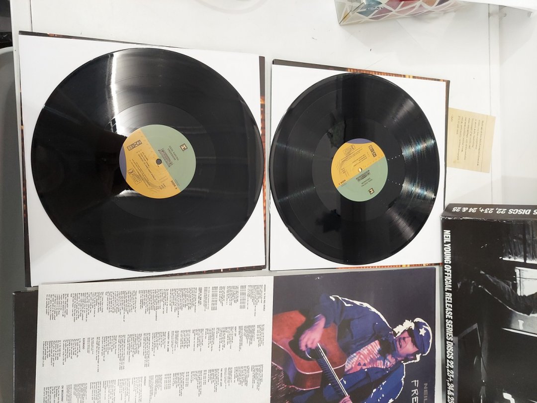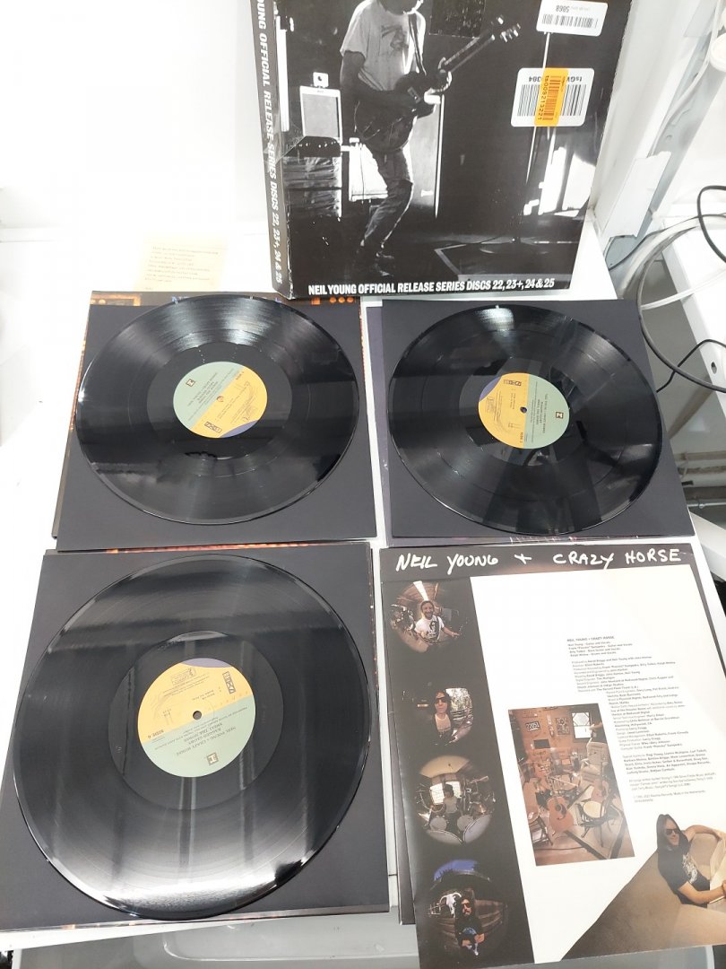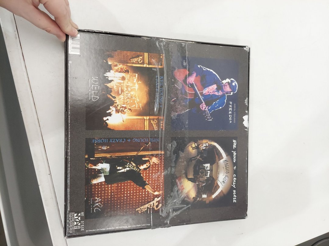 Item arrived with a distressed box and some of the packing materials(record sleeves) are lightly distressed but nothing significant and nothing that appears to effect the records. see photos.