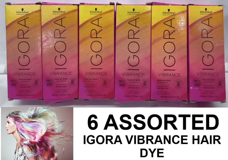 6 assorted igora vibrance hair dye - assorted shades
