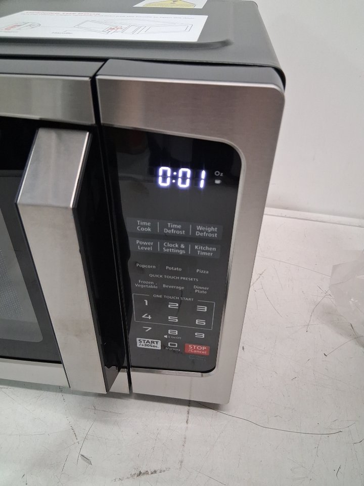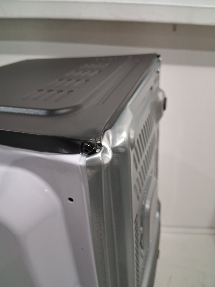 Tested functionality for 30 seconds. Please note there is a dent in the back-bottom corner, and the top-front-left corner does not line up with the door, see photos, see photos.
