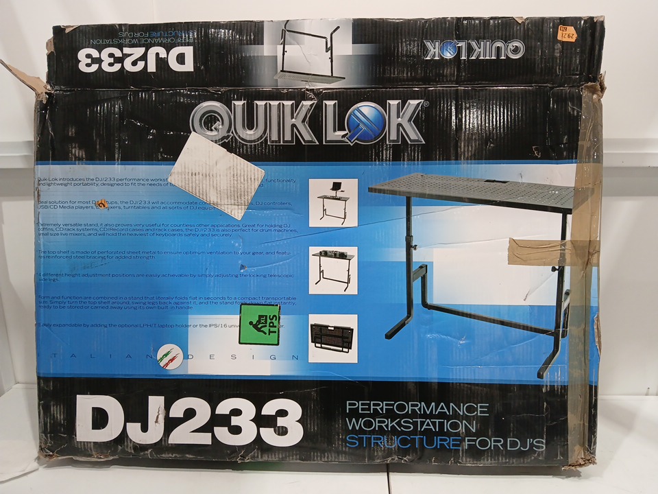 QUIK LOK ADJUSTABLE HEIGHT DJ MIXER STAND/TABLE - WEIGHT CAPACITY 200LBS - BLACK (MODEL: DJ233)