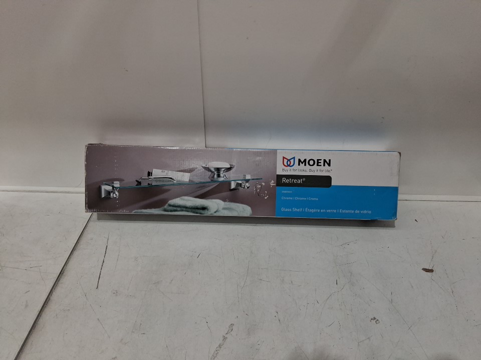 moen retreat glass shelf- 4.48" x 19.48" x 2.24-chrome/glass-(model:DN8490CH)