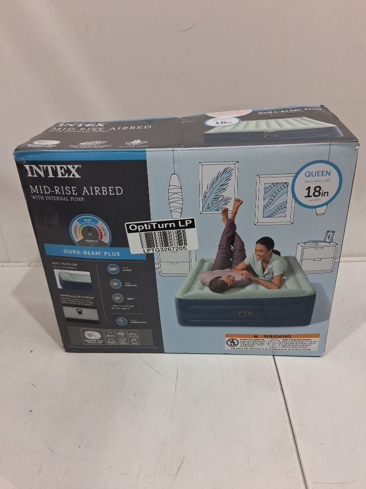 Intex Dura-Beam Plus Mid-Rise Indoor Airbed Mattress with Quickfill Internal Air Pump - Queen 18" H - Blue/Grey (Model: 66193TT)